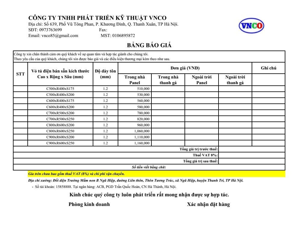 Thương hiệu: VNCO Loại: Vỏ tủ treo tường trong nhà